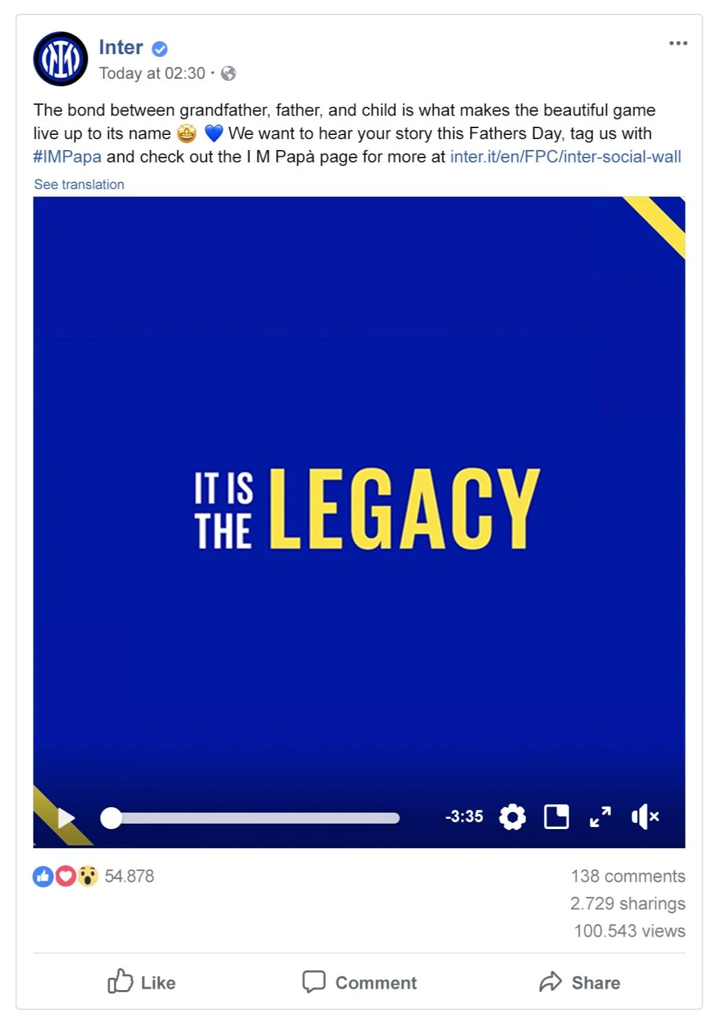 Key Message: To celebrate the bond between father, child, and football through generations.